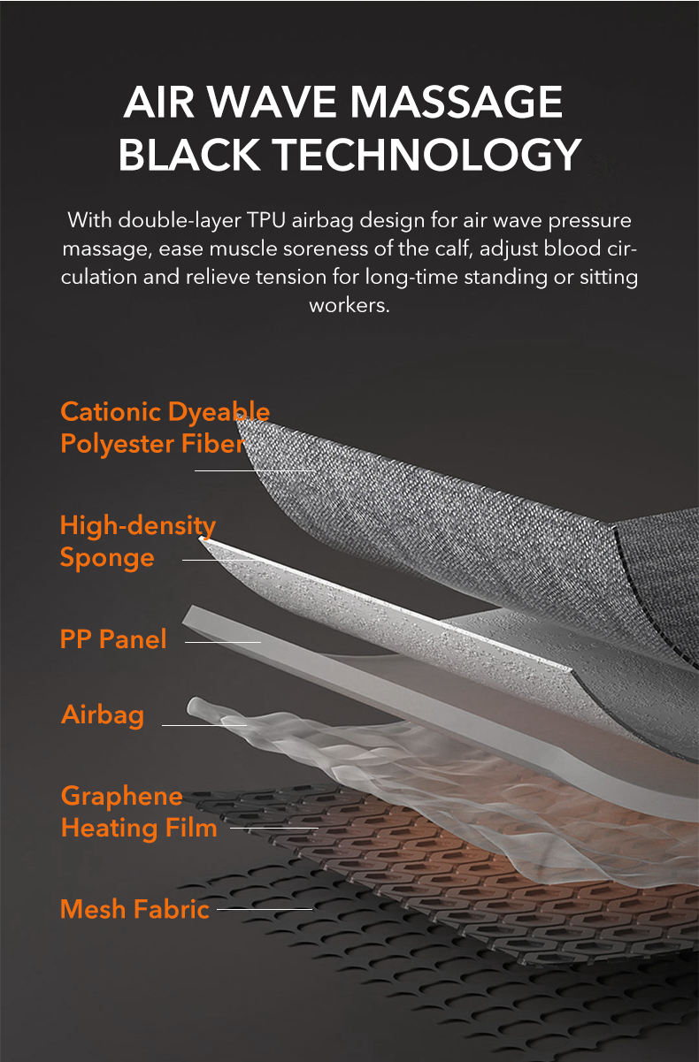 PMAKULALX K-TBAMQ-A1V1 Masajeador de piernas con calor de grafeno es un tipo de productos de fisioterapia saludables equipados con un módulo de calentamiento de grafeno en el interior, que libera la misma longitud de onda de luz (6 ~ 14um) del cuerpo humano después de la electrificación, para proporcionar una compresa caliente de infrarrojo lejano en el área del cuello.