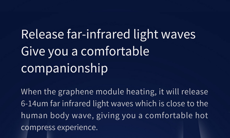 -Far-infrarrojo Vida humana onda ligera caliente Efecto: grafeno Lanzamiento de material 6 ~ 14um Longitud de onda ligera que es la misma longitud de onda del cuerpo humano, más fácil de absorber el tejido, acelerar la circulación sanguínea y el metabolismo corporal, aliviar el cansancio de la cintura y el dolor.