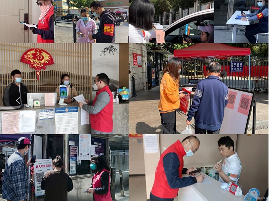 Volunteers from PMA Group can be seen in positions such as temperature measurement and code inspection, order maintenance, and on-duty duty.